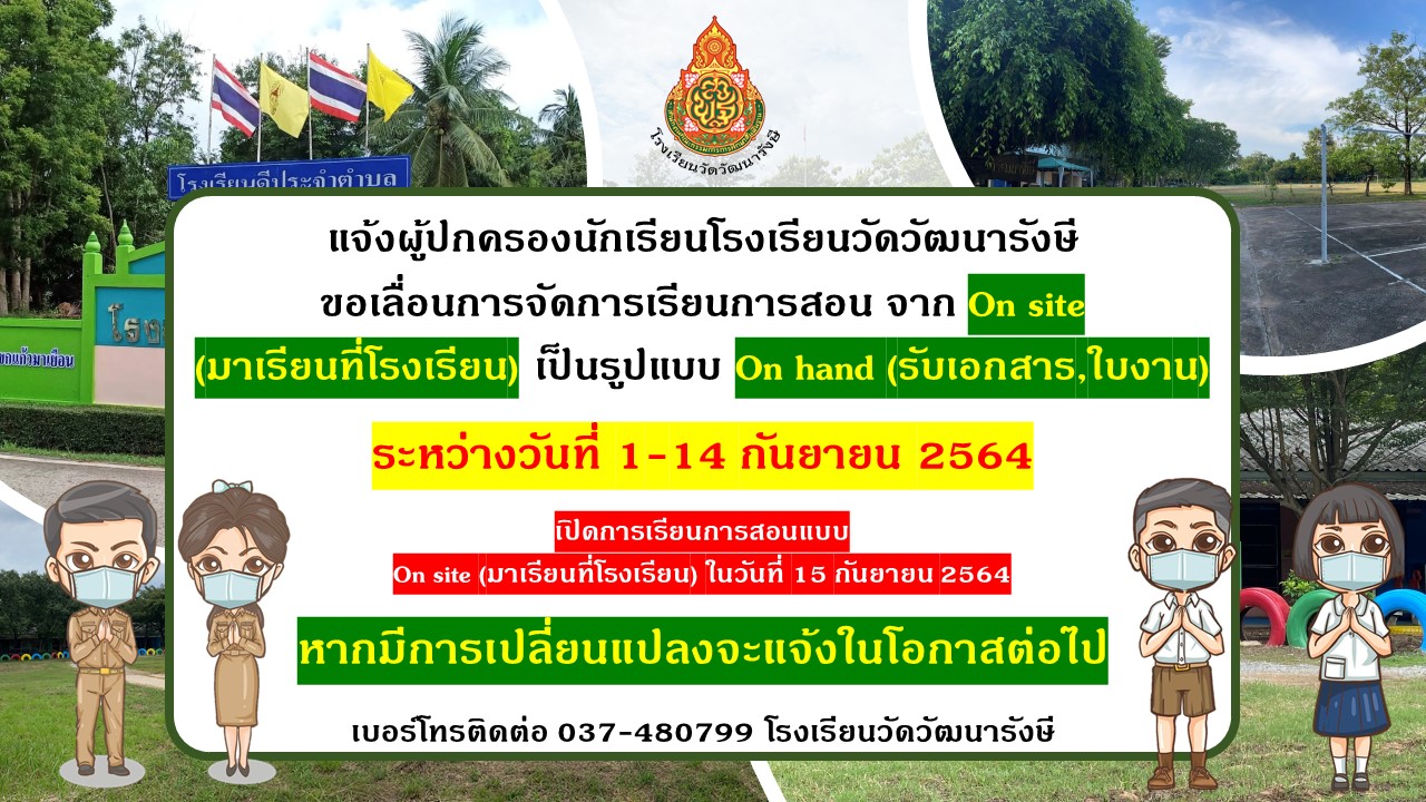แจ้งผู้ปกครองนักเรียนโรงเรียนวัดวัฒนารังษี